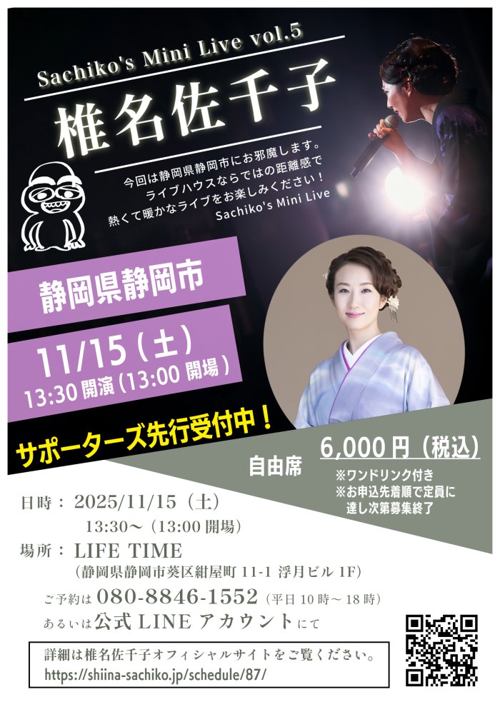 現在、公式「しいなさちこサポーターズ」への優先案内中です。